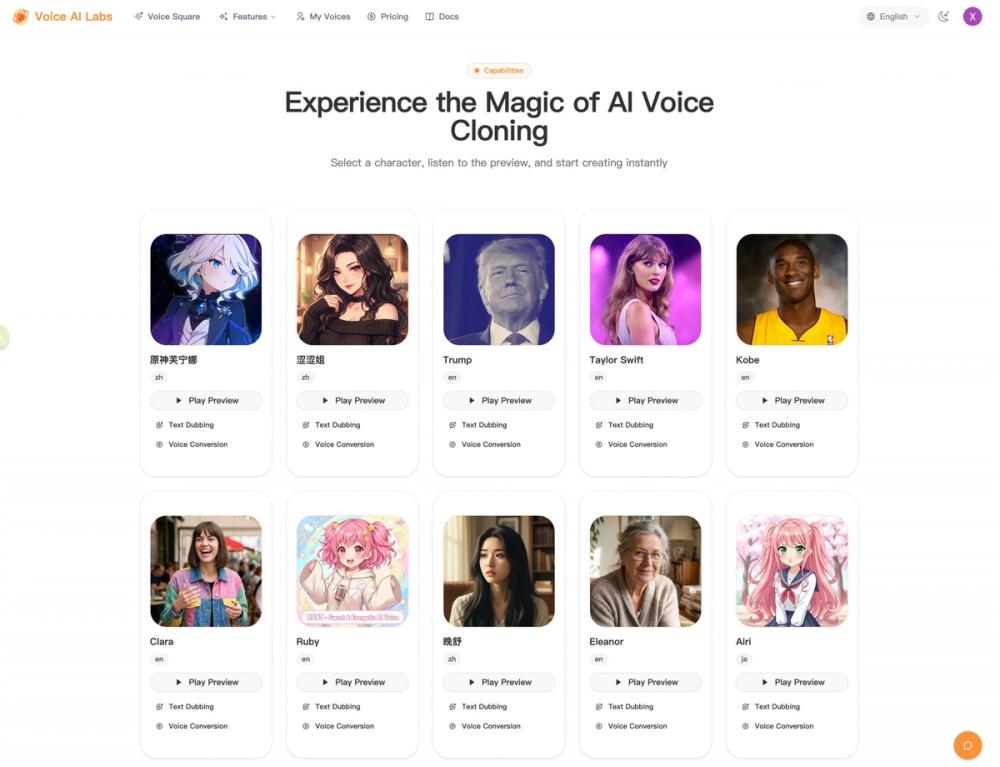 Voice Square Community A community-shared library of high-quality voice models is available, enabling users to utilize or share their creative voices easily.